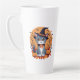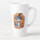 Esta gran taza de café con leche tiene un adorable gato gris con marcas blancas, con un gorra de bruja negra adornado con una banda naranja y hebilla. Los grandes ojos expresivos del gato añaden encanto a su estancia, ya que se encuentra en medio de una dispersión de hojas de otoño. Detrás del gato, dos calabazas esculpidas con caras agradables y una gran luna llena crean un paisaje de temática de Halloween, con árboles de ramas desnudas y siluetas. Este diseño lúdico y festivo es perfecto para añadir un toque de espíritu de Halloween a tu ritual diario de café o té. Esta gran jarra de latte es una elección ideal para todo aquel que ame los adorables y festivos diseños de Halloween, lo que lo hace un maravilloso regalo para varias ocasiones o una encantadora adición a su propia colección "contenido generativo"