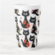 Un juego de gatos negros decorados con flores audaces y coloridas en tonos rojos, naranjas y beige. El fondo es blanco, lo que contrasta con las figuras del gato oscuro. Ideal para un lindo proyecto de Halloween o cualquier otra época del año