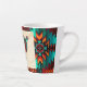 ¡Este es un singular Gecko Lizard Latte Mug! Cuenta con una laguna de gecko del suroeste y un sol sobre un fondo de piedra arenisca... ¡Rodeado por un borde turquesa, Naranja y negro! Este es un original diseño de arte "One of a Kind" del artista Kerry Miller.