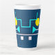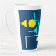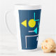 This geometric circuit mug features a deep navy background crossed with clean turquoise lines, bright yellow circle and triangle icons, and small white blocks arranged like a futuristic dashboard or minimal control panel. The bold color blocking, simple shapes and tech-inspired layout create a sleek abstract design that appeals to gamers, designers and modern art lovers.