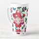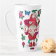 Una bella y grande jarra de latte diseñada con Rosas, mariposas y gnomos de amor