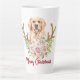 Taza De Café Latte Golden Retriever Floral Merry Christmas