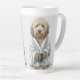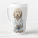 Comience bien el día compartiendo una taza de café con este dorado doodle dorado.