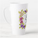 Esta es una taza de café con leche con gracias en un marco floral. El texto se puede editar