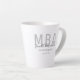 Una taza de graduación de MBA que incluye el nombre del graduado, campo de estudio y fecha de graduación. La taza incluye el nombre en un tipo de letra de guión y el diseño tiene un esquema de color blanco, gris y negro. Es grandioso como un gran favor o un favor partidario. Simplemente agrega la información del graduado, agrega esta taza a tu carrito, y felicitaciones por este importante hito! Nombre gris blanco MBA Graduado Latte Mug Diseño de vacaciones | ©Melissa Patton - Diseñador