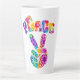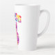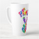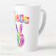 Groovy latte mug presenta estilo retro tiñe el signo de paz con texto curvo