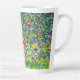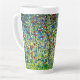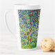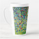 Latte Mug presenta la pintura Apple Tree, I (1912) de Gustav Klimt. Un colorido manzano rojo se alza en un campo verde de flores moradas, rosas, amarillas y blancas. Un regalo perfecto para los amantes del arte Art Nouveau y austriaco.