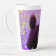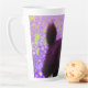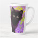 ¡Latte Mug con un gatito negro Gustav Klimt! Esta belleza de ojos anchos posa en un campo verde de flores moradas. Un regalo para los amantes del gato y del arte austriaco.