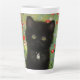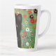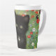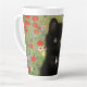 ¡Latte Mug con un gatito de Gustav Klimt! Este gatito negro lleva un collar de plata y se sienta en un campo de flores rojas, azules, blancas y amarillas. ¡Un regalo maravilloso para los amantes del gato y del arte austriaco!
