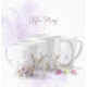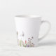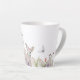 12 oz Latte Mug with a border of floral Easter eggs, bunny and butterfly and Happy Easter
