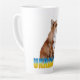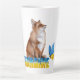 Una hermosa manera para los amantes de los animales de mostrar su apoyo a Ucrania. Bonito latte mug incluye zorro rojo acuarela con texto "Ucrania" y mariposa en los colores azul y amarillo de su bandera nacional con fondo amarillo.