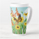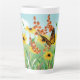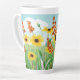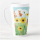 Taza De Café Latte Hermosas flores amarillas cielo azul y mariposa