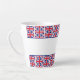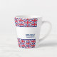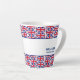 Patriotic UNION JACK Latte Mug, especialmente diseñado para hoteles, hosterías, negocios y dentro de la industria hotelera. El diseño muestra el panel blanco liso con la bandera de la Unión en un fondo de patrón de baldosas. El texto del personalizable lee BIENVENIDA más nombre de marcador de posición, que puede personalizar con el nombre de su negocio, y también añadir su propio saludo. El texto está justificado a la derecha y puede tener un ancho total. Una buena manera de añadir estos pequeños pero vitales toques para sus clientes, visitantes e invitados. El diseño de esta bandera ofrece un giro patriótico a tu vestuario corporativo.
