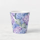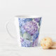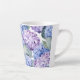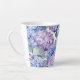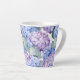 Esta jarra de latte cerámica se muestra con una hermosa huella floral de hidrangea multicolor. Personalizar este artículo o compra tal cual. Imagen con licencia