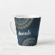 Yoga Fitness Studio / Instructor de Meditación / Entrenador personal / Coach de vida / Healer / Reiki Master / Massage Therapy Cotes Latte Mug. Moda moderna Relieve metalizado dorado Faux Floral Mandala Símbolos sobre el fondo del patrón de olas azul de la Marina.