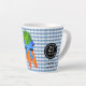 Acentúe la cocina de su casa de campo con esta taza para latte de jugo de zanahoria linda. Esta taza presenta un diseño de zanahoria cultivada de manera orgánica. Cómprela como se muestra o agregue sus propias palabras.
