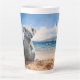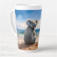 Taza De Café Latte Koala en una playa de arena