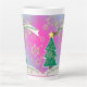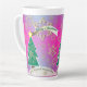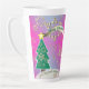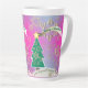 Taza De Café Latte Larga escena de árbol de Navidad púrpura y nevada