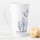 Ardilla voladora haciendo un latte volando sobre esta taza. Arte original hecho a mano con tinta por Sue Clancy.