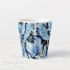 Un impresionante cuadro de estilo tradicional de Petrykivka presenta delicadas flores azules y azul cielo que florecen vibrantemente sobre un fondo negro profundo. Cada pétalo es meticulosamente detallado, mostrando intrincadas pinceladas y patrones ornamentales típicos de este arte folclórico ucraniano. El diseño floral irradia elegancia y armonía, con arreglos simétricos y sutiles gradientes que resaltan la habilidad del artista. El telón de fondo oscuro intensifica los colores, haciendo que las flores parezcan casi luminosas, mientras que elementos ornamentales más pequeños como hojas y tendrilos agregan un sentido de movimiento y vida a la composición.