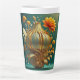 A whimsical floral design in shades of green and gold covers this unique Latte Mug.