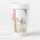 Taza De Café Latte Letra F floral con brillo rosa