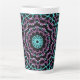 Taza De Café Latte Lilac, mandala negra y turquesa.