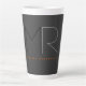 Taza De Café Latte Llanura de monograma negro gris moderno