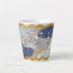 Este es un lujoso y lujoso barro purpurina falso. La imagen de la taza tiene un efecto glam estrellado. El arte cuenta con un ilustracion de purpurina lujoso glamuroso de plata falsa, un falso purpurina azul y un falso purpurina blanco dentro de un marco de purpurina dorado onírico y turbio alrededor del purpurina. El fondo es de un color beige suave. La taza es una pequeña taza de latte de 12 onzas.