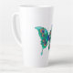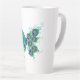 Taza De Café Latte Mariposa con plumas de pavo real verde