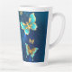 Taza De Café Latte Mariposas doradas sobre fondo azul