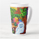 Latte Mug presenta al maestro de pintura animal de Louis Wain del Cat College (1860-1939). Un bonito gato blanco con ojos azules llamativos se sienta preponderantemente al lado de una vibrante variedad de hermosas flores. La majestuosa escuela de gatos se cierne sobre el fondo bajo un cielo rosa y azul. Un regalo maravilloso para los amantes de los gatos y el arte inglés.