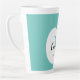 Mejor maestro monogramado latte mug con logo de manzana. Elegante diseño de plantilla con mensaje y nombre personalizado. Tipografía de escritura elegante. Color azul verde azulado o personalizado. Tasa de café en forma de cono grande con monograma y símbolo de enseñanza. También disponible en pequeñas dimensiones. Ideal para el hogar, oficina, escuela, etc. Gracias, Navidades o regalo de cumpleaños para profesor de escuela, educador, decano, entrenador, tutor, profesor de guardería, profesor de escuela de gramática, profesor de preescolar, etc. Diseño de silueta de frutas.