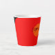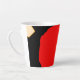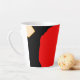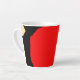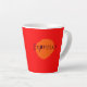 Esta moderna taza muestra colores cálidos como el rojo y el naranja y la palabra "Expresso" en el centro.