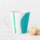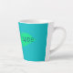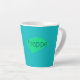 Este moderno tazón de diseño muestra colores verdosos y la palabra "frappe" en azul, en el centro.