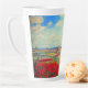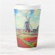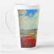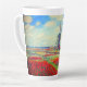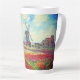 Latte Mug presenta la pintura de Claude Monet sobre la flor y el molino de viento. Hermosos y coloridos campos de tulipanes rojos, rosados y amarillos junto a un molino de viento y casa en Holanda. Un gran regalo de Monet para los amantes del impresionismo y el arte francés.