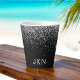 Taza de café con monograma de nombre con brillo negro y plateado. Este regalo es perfecto para cumpleaños dulces 16, boda, despedida de soltera, aniversario, baby shower o fiesta de despedida de soltera para alguien que ama el glamour de lujo y los estilos chic.