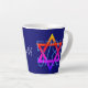 Monograma Latte Mug de Año Nuevo judío colorido con 5782 (año hebreo correspondiente a 2022). El diseño muestra una Estrella de David (Magen David) de colores vivos con un PERSONALIZABLE 5782, por lo que puedes cambiarlo por CUALQUIER AÑO (o borrarlo), todo ello con un fondo azul oscuro. El diseño se repite en la parte trasera y en el centro hay un PERSONALIZABLE MONOGRAM. Esto sería un gran regalo para celebrar Rosh Hashanah. Podrá elegir entre una amplia selección de prendas de vestir de temática judía, tarjetas, decoración casera, suministros fiestas y regalos diseñados por los diseños bereanos.