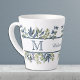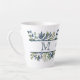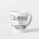 Taza De Café Latte Monograma de borde de hojas azules índigo