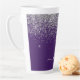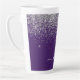 Taza De Café Latte Monograma de Girly Glam Purpurina de Plata Púrpura
