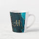 Tome su café matutino con estilo con esta elegante taza de café personalizado con leche con un fondo verde azulado de agate acentuado por un falso purpurina de oro. Personaliza tu monograma en escritura moderna y tu nombre en la parte superior. Un regalo único para las niñas por cualquier ocasión para ese chica especial en tu vida. Diseñado solo para ti por ExtremeTees. ¡Disfrútalo!