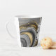 Mug de latte personalizada con un diseño abstracto con un patrón mineral geodésico agate. Giro dorado, gris, blanco y negro que forman elegantes olas de color. Un cuadrado gris claro con un delgado borde negro sobre la parte superior con el texto dentro. Elegancia moderna y elegante.