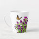 Esta taza de café con leche de flor de bonito presenta paneles morados. Se añadió una mariposa monarca como superposición. Compra esta taza por ti mismo o compra como regalo para un jardinero o para cualquiera que ame el color púrpura y las flores de palma.
