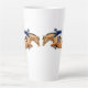 Una gran idea de regalo para todos los bebedores de café a los que les gusta el salto de espectáculos y otros deportes ecuestres, esta taza de latte de cerámica alta de alta calidad cuenta con un detallado diseño de caballos de salto y jinetes de la artista y diseñadora Carolyn McFann de Two Purring Cats Studio.