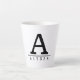 Trama de latte monogramada con nombre personalizado inicial. Cafetera moderna de tipografía para hombres y mujeres. Pandillas personalizadas para casa u oficina. Elegante idea de regalo de cumpleaños para él o ella. Haz uno para mamá, hermana, amiga, novia, compañera de trabajo, jefe, papá, esposo, abuelo, abuela, profesor, entrenador, etc.