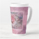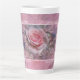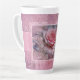 ¡Esta es una singular "One of a Kind" peluca rosa de latte rosa! Cuenta con una hermosa rosa rosada rodeada de flores de aliento del bebé enclavada en un fondo morado, rosa y verde y un borde de encaje. Diseño Gráfico Original Del Artista Kerry Miller