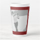 The Latte Mug features a calm design in dark red tone. An stylish man playing Golf. He is focused on his shot.