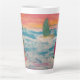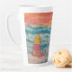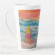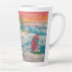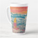 Barcos de vela navegando en aguas turbulentas del océano, cielo naranja brillante, blancos por todos lados, atractiva jarra de latte pintada a mano.