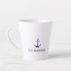 Nautical Personalizado Nombre del barco ancla azul marino Latte Mug blanco. Personalizar de texto náutico de navegación, nombre del capitán. Nombre del barco, tienda, nombre comercial. Diseño moderno, Minimalista, sencillo y elegante, ideal para marineros, barcas, vela y paseos en bote. ¡Feliz navegación!