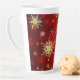 Taza De Café Latte Navidades Copos de nieve dorados con fondo rojo